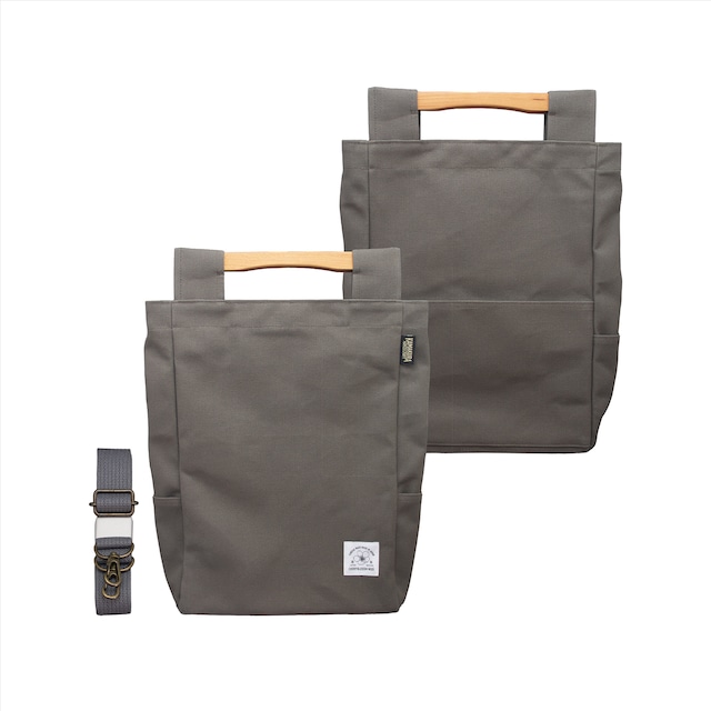 桜岡持ちバッグ(ストラップベルト付) ◎持ち手が天然木材の個性的な帆布バッグ このバッグのハンドルは、香川県内で公共工事の際に伐採された天然林の山桜を使用しています。高級家具の製造から外れた木材をハンドルへと加工した新しいスタイルのアップサイクル商品です。 桜の木肌は繊細で優美でありながらとても耐久性に優れています。ご使用の際、手から伝わる肌感は風雅ある心地良さがあり、使えば使うほど愛用感が高まります。 本体生地はブランド帆布のとてもタフな富士金梅8号を使用し、普段使いにぴったりな1日お出掛けサイズになります。 このバッグの佇まいは、江戸時代初期1600年ごろから誕生した日本の伝統工芸品である木箱の岡持ちが題材になっています。初めて見てもどこか懐かしさを感じさせるバッグです。ニューレトロな言葉がぴったりのこの桜岡持ちバッグには日本人の文化が詰まっています。 桜の木の木肌は繊細で優美でありながら耐久性に優れ、ご愛用とともに経年変化も楽しめます。 唯一無二の可愛いスタイルで「気分が上がる」「楽しい」などと大変好評をいただいています。 ◎実用性 本体素材はキャンプ用具にも使われるしっかりした帆布生地、持ち手の木材は手に馴染みやすいように計算された曲線を職人が一つ一つハンドメイドしています。 両側のポケットもペットボトルやスマートフォンなどが入るサイズで実用的です。 本体サイズ:H28cm×W23cm×D13.5cm 持ち手サイズ:H1.5cm 素材特徴:本体:日本製ブランド帆布「富士金梅」 (厚手で耐久性に優れた8号タイプを使用) 持ち手:希少価値の高い天然林山桜の木を採用 ※ショルダーベルト付 KAMAKURA HANDS CRAFT カマクラ ハンズ クラフトは古くから手袋産地もで知られる香川県が生んだ特有の技術と、地域産業の渦中で21年間従事した豊富な経験を活かして2018年に立ち上げました。責任と信頼を掲げ、高品質素材と独自スタイルにこだわった付加価値商品を創作します。デジタル化には程遠いものづくりの現場、プライドと高い決意をもって生み出される製品には他にない価値がここにあります。楽しさやトキメキ、皆さまとの出会いを大切にして日々創作に邁進しています。 知財:意匠登録第1742489号 意匠登録第1742490号